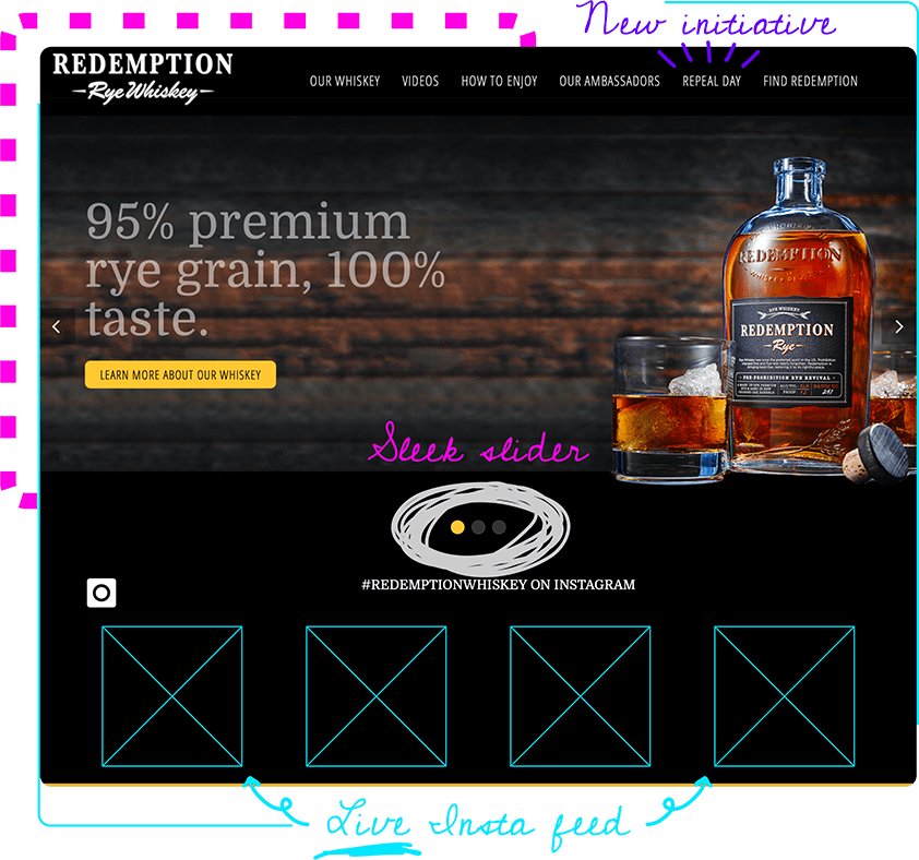During my web internship at Deutsch Family Wine & Spirits, I conducted a case study on the development and implementation of a new, redesigned Redemption Whiskey website. Prototype/mockup included.